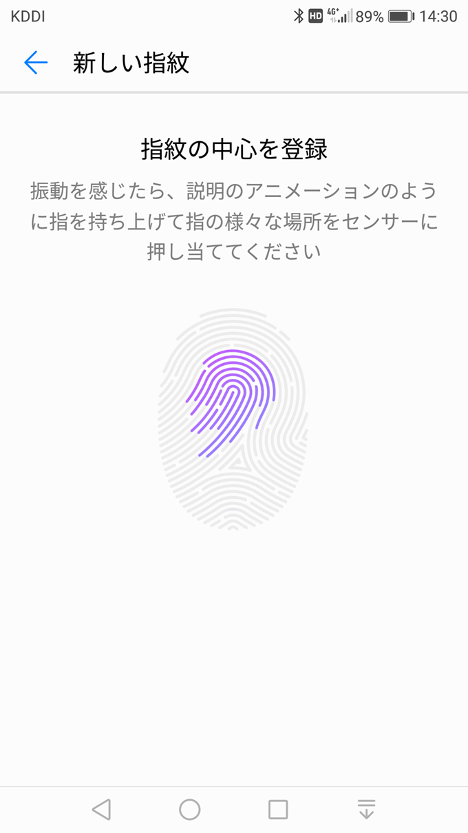 HUAWEI P10 liteの指紋登録